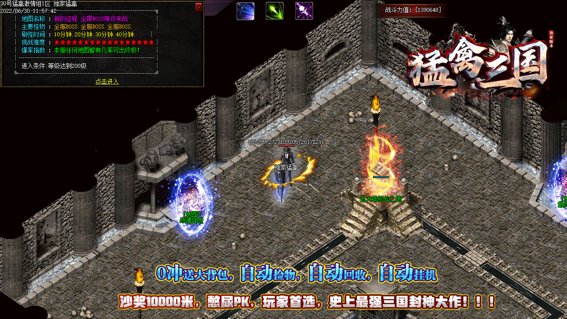 0冲送大背包,自动捡物,自动回收,自动挂机,沙奖10000米,憋尿PK,玩家首选,史上最强三国封神大作!!!